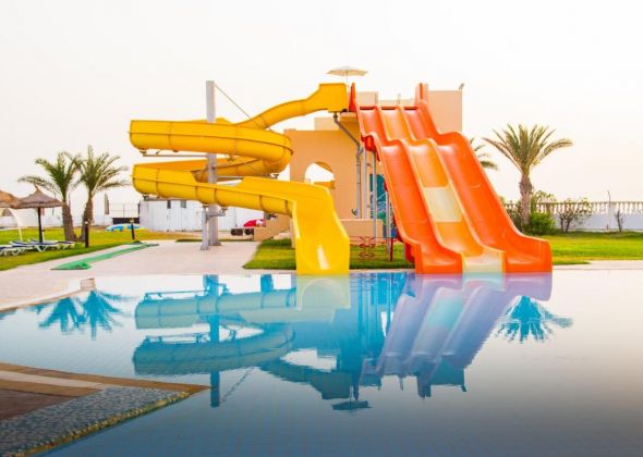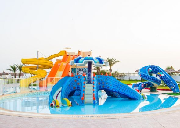 За децата: детски басейн с мини пързалки, втори детски басейн, детска площадка, мини клуб (4 -12 год.) д), бебешка кошара (безплатно, след предварителна заявка, според наличността), детски столчета в ресторантите.