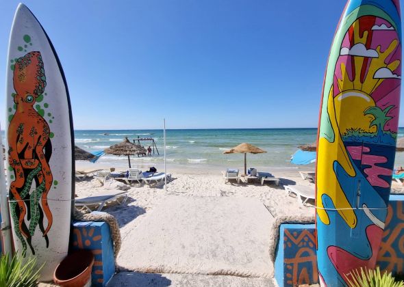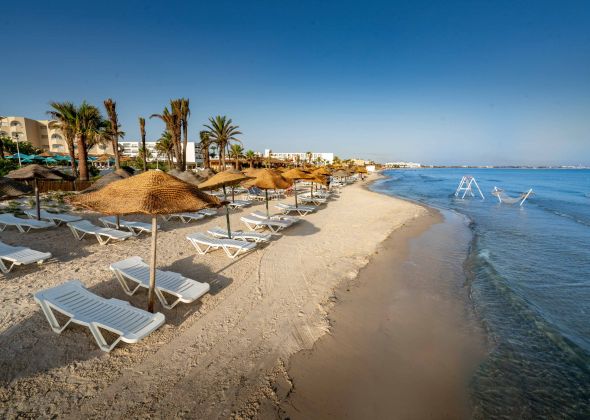 Собствен, пясъчен плаж, на първа линия. Чадъри, шезлонги и матраци на плажа и при басейна - безплатно. Плажни хавлии - безплатно, срещу депозит.