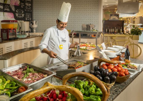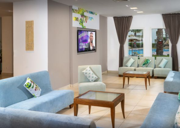 Основен ресторант, ресторант на плажа (само във висок сезон), платен а ла карт ресторант Le Voilier с международна кухня (1 безплатно посещение на престой, след предварителна резервация, само във висок сезон), лоби бар Le Patio, бар басейн, плажен бар, мавританско кафене (срещу заплащане), нощен бар Blue Dolphin bar (срещу заплащане), 2 открити басейна, 1 открит басейн само за възрастни, 1 закрит басейн (отопляем през зимата), анимация, музика на живо, 24 часова рецепция, сувенирен магазин, обмяна на валута, голф игрище.