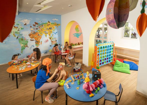 За децата: мини клуб за деца от 4 до 12 години, детска площадка, детски столове в ресторанта, бебешка кошара (при поискване, в зависимост от наличността), детски басейн.