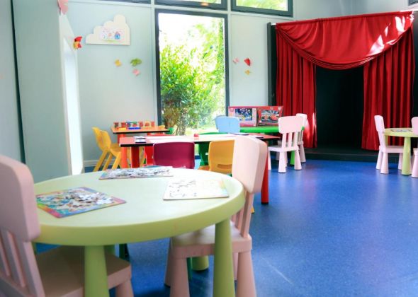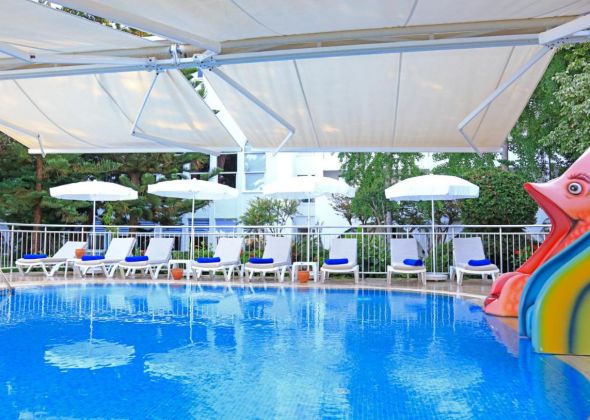 За децата: 2 детски басейна, мини глуб (4-12 г.), детски столчета, пързалки.