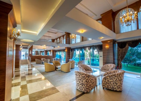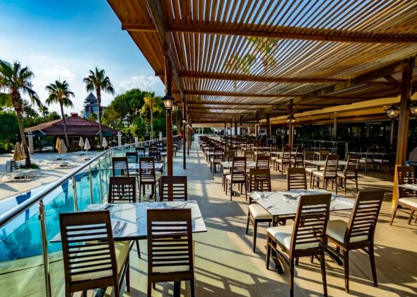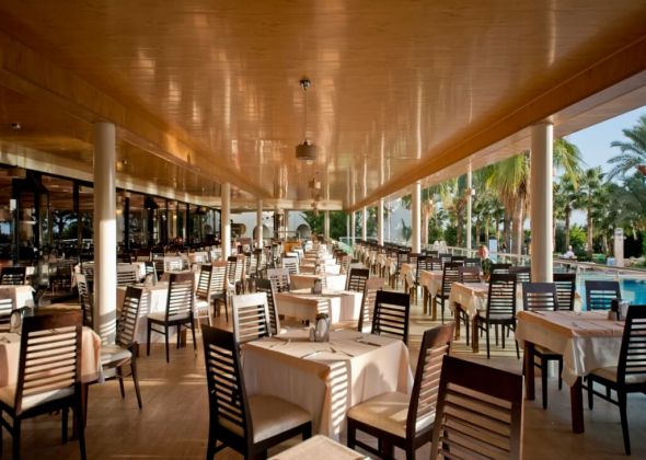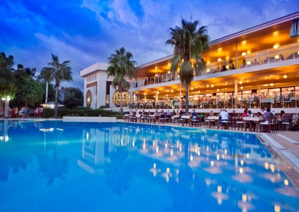 Основен ресторант, а - ла - карт ресторант, 4 бара, 4 открити басейна, 1 закрит басейн, 3 водни пързалки и кино, СПА център, магазини, пералня (платено), 2 конферентни зали, футболно игрище.Безплатни услуги: турска баня, сауна, фитнес център, аеробика, дартс, плажен волейбол, баскетбол, дискотека, анимация.Платени услуги: