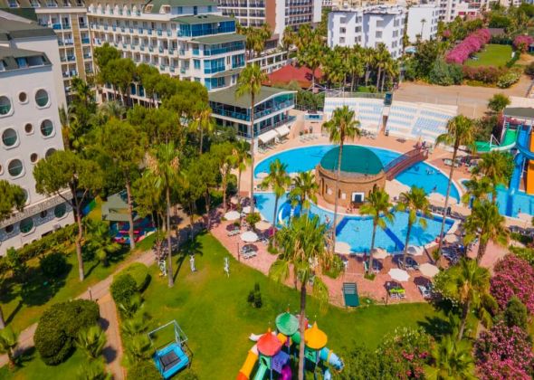 Хотела се намира в района на Конаклъ, Алания, на 10 км от центъра на  Алания и на 110 км от летището. Открит е през 1992г.