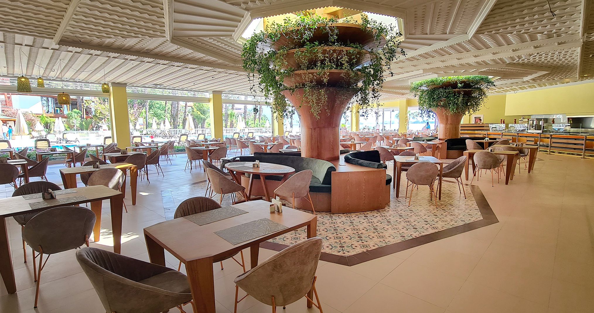 3 ресторанта на шведска маса (основен Cactus Restaurant, Lykia Restaurant и Moonlight Restaurant), 3 а-ла карт ресторанта (всички те са с предварителна резервация, срещу заплащане), 4 снек ресторанта; 9 бара, 3 открити басейна, (всеки с отделна детска секция ), 2 детски басейна (единия от тях с водни пързалки), 3 водни пързалки (завършват в морето), конферентна зала, 4 асансьора до по-високите бунгала, зала за игри, частно яхтено пристанище с капацитет 30 яхти (срещу заплащане).