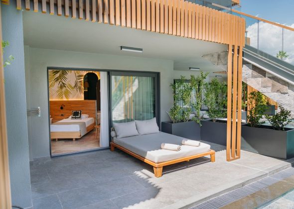 Хотелът се състои от 502 стаи, разпределени в 28 блока. Разполага с 413 клубни стаи (клубната част е на брега на морето), 157- парк стаи. Клубна част: 350 Standard Club Rooms ( 2-4 човека ,27 – 30 m2), 3 Standard Club Handicapped Rooms ( 2 човека, 27 – 30 m2), 60 Family Club Rooms ( 4-5 човека/ 2 спални, 1 баня, 2 балкона /, 43 m2), Парк стаи: 75 Standard Park Rooms (2-3 човека, 18 – 24 m2), 14 Park Family Rooms (4-5 човека, 39 m2).Всички стаи са оборудвани с климатик, телевизор, телефон, баня с душ/вана, сешоар, балкон. Почистване на стаите - всеки ден, смяна на спалното бельо – 2 пъти в седмицата.