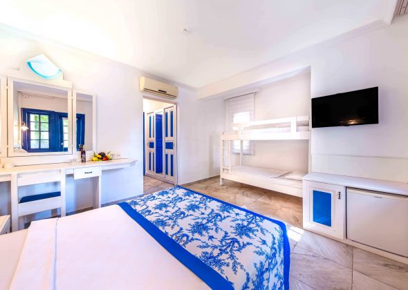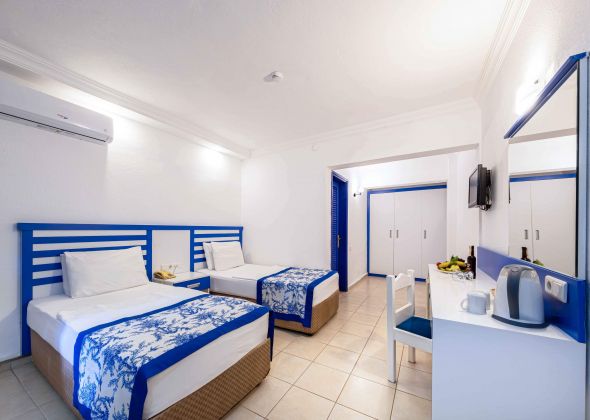 Хотелът разполага с общо 196 стаи, разположени в 11 блока , от които 28 Economy room – разположени на сутерен (17 m²), – 131 Standard room (20 m²), 29 Bunkbed room (22 m²),8 Dublex room. Всички стаи са оборудвани с климатик, LCD телевизор със сателитни канали, телефон с директно избиране, баня с душ, сешоар, мини-бар (с безалкохолни напитки), комплект за чай/ кафе, будоар, тоалетка с огледало, сейф (платен), балкон или тераса. Почти всички помещения са с ламинат/ паркет. Икономичните стаи са с фаянс и са разположени на сутерен. Почистване на стаите - всеки ден, смяна на спално бельо – 3 пъти в седмицата.
