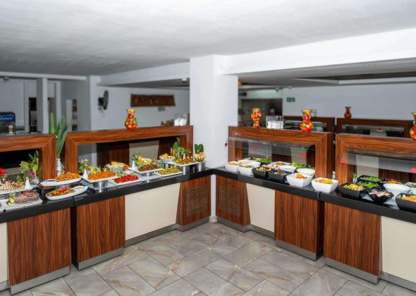 Основен ресторант, а - ла - карт ресторант (платен), 3 бара, открит основен басейн , релакс басейн, СПА център, магазини, паркинг.