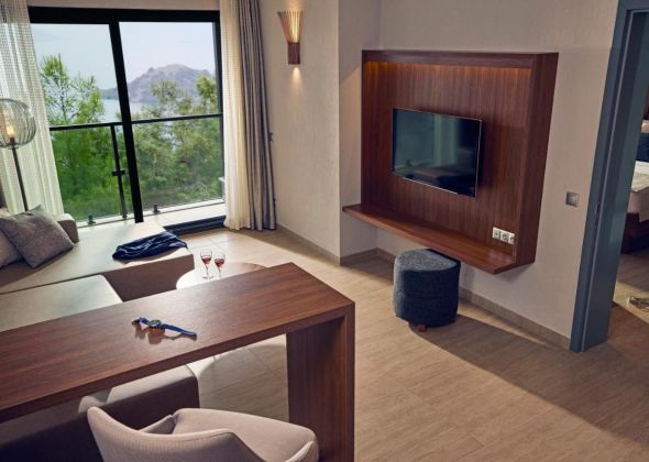 Хотелът разполага с 314 стаи, разположени в 34 блока - 231 Standard Room - Sea View (28 m2), 49 стаи тип Standard Room - Garden view (28 m2), 16 Connecting Room (56 m2), 12 SUIT Room - Sea View (50 m2), 6 SUIT Room - Garden View (50 m2). Всички стаи разполагат с климатик, телевизор, телефон, баня с душ, сешоар, сейф (безплатно), мини бар (безплатно - безалкохолни напитки, вода, бира, сокове), сет за чай/кафе, балкон. Почистване на стаите - всеки ден, смяна на спалното бельо и кърпите - 2 пъти седмично.