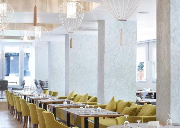 Основен ресторант, а-ла-карт ресторант (гръцки, италиански и рибен - платен) ,4 бара, сладкарница, дискотека, 4 открити (един с 2 водни пързалки) и 1 закрит басейн, магазини, СПА център, конферентна зала, паркинг.