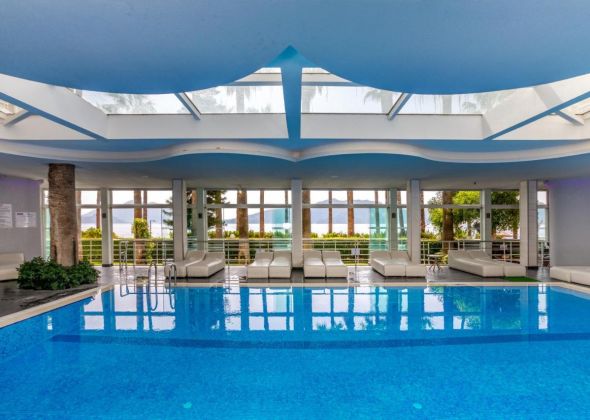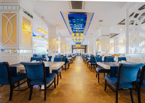 Основен ресторант, 2 а-ла-карт ресторанта, 4 бара, сладкарница, дискотека, 2 открити и 1 закрит бесейн, водни пързалки (работят 3 часа на ден), конферентна зала, СПА център, фитнес, турска баня, сауна.