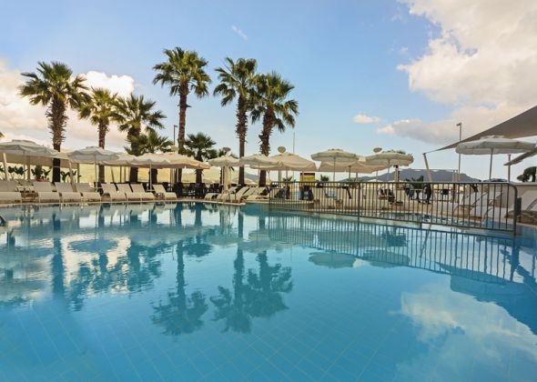 Основен ресторант, 3 бара, открит и закрит басейн, конферентна зала. Безплатни услуги – Сауна, парна баня, фитнес. Платени услуги: масаж, сейф, пералня, химическо чистене, фризьорски салон, водни спортове, WI-FI интернет, Уелнес център и СПА център. Плаж – Собствен, пясъчен, удостоен със сертификат "Син флаг". Чадъри и шезлонги на плажа и при басейна – безплатни.