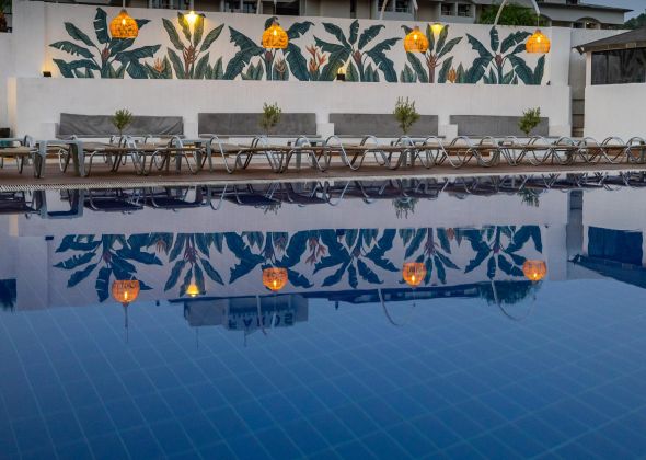 Плаж: Собствен, пясъчен, на 60 м. от хотела (пред Munamar Beach & Residence). Чадъри и шезлонги на плажа и при басейна - безплатно.