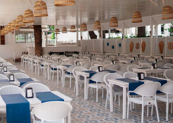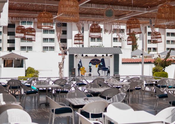 Основен ресторант, 2 бара, 4 басейнa (релакс басейн, детски басейн, за възтастни и басейна с водна пързалка), детски клуб, детска площадка, магазини, паркинг.