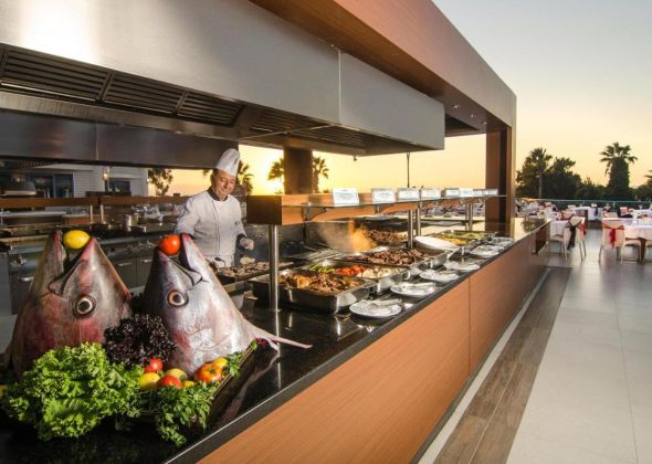 Основен ресторант, 3 а-ла-карт ресторанта (рибен, отомански и италиански - с предварителна резервация, едно безплатно посещение на един от тях, в периода от 01.06-15.09), 5 бара, сладкарница, 2 открити басейна, СПА център, дискотека, магазини.