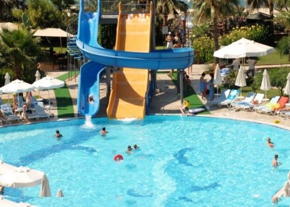 Хотелът разполага с основен ресторант, а-ла-карт ресторант, 3 бара, дискотека, плувен басейн, вътрешен плувен басейн, детски басейн, водни пързалки, СПА център,фитнес, турска баня, масажи, тенис корт, баскетбол, волейбол, амфитеатър, анимация, игрална зала, конферентна зала, паркинг, доктор, водни спортове. Безплатни услуги: турска баня, сауна, фитнес, всички дейности от анимационната програма, дискотека, тенис на маса, дартс, волейбол, билярд, водна гимнастика, аеробика, тенис корт. Платени услуги: масажи и други козметични процедури, всички водни спортове, игрална зала. За децата: мини клуб /4-12г./, детски басейн, анимация.