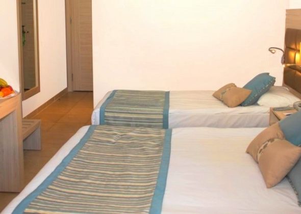 Хотелът се състои от два основни корпуса и разполага с 312 стаи . Всяка една е оборудвана с климатик, сателитна телевизия, телефон, баня с душ, сешоар, мини бар, сейф, балкон или тераса. Почистване на стаите - всеки ден, смяна на спално бельо - 2 пъти седмично.