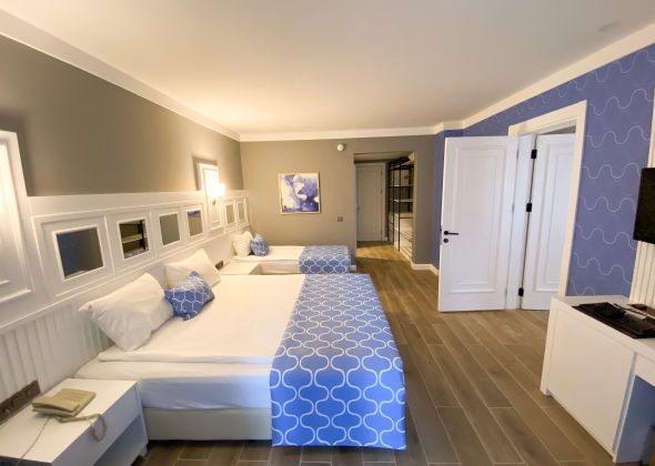Основен ресторант, 3 а – ла карт ресторанта (италиански, турски и средиземноморски, с предварителна резервация), 7 бара (един от тях работи 24/7 с включен определен вносен алкохол), сладкарница, дискотека, фитнес, СПА център, мини – клуб, 4 басейна, водни пързалки, амфитеатър, библиотека.