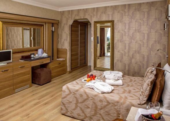 Хотелът разполага с общо 385 стаи, от които 13 Promotion Room /без балкон,17-19 m2/, 138 Comfort Room (спалня и диван, 17-19 m2 , изглед градина), 74 Marin Premier Room (спалня и диван, 17-19 m2, частичен изглед море ), 58 Marin Select Room (спалня и диван, 17-19 m2, изглед море ), 39 Comfort Family Room (2 стаи, една със спалня и една с две единични легла, 27 - 30 m2, изглед градина), 59 Marin Family Room (2 стаи, една със спалня и една с две единични легла, 27 - 30 m2, изглед море), 4 стаи за инвалиди (2 стандартни и 2 фамилни, 17-19 m2). Всички стаи са оборудвани с климатик, телевизор, телефон, баня с душ/вана, сешоар, сет за чай/кафе, мини бар (платен), сейф (безплатен), балкон. Почистване на стаите - всеки ден, смяна на спалното бельо и кърпите - 3 пъти в седмицата.