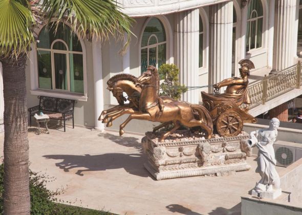 Основен ресторант с различни секции: Zeus ( предлага вкусно меню от най-изисканите вкусове на турската кухня до най-възхитителните вкусове на италианската кухня) Hermes (предлага свежи морска дарове), Athena (зона само за възрастни с богато меню), 3 а-ла-карт ресторанта : Apollon- турски, Aphrodite - китайски и Poseidon - средиземноморски (1 безплатно посещение, с предварителна резервация при мин. 7 нощувки), снек ресторант Apollon, Aphrodit Kitchen & Bar. (предлага закуска, нощна супа и сандвичи), 5 бара, сладкарница, 2 открити басейна, 1 открит инфинити басейн (срещу заплащане), закрит басейн, водни пързалки, СПА център, конферентна зала, магазини, дискотека, паркинг.