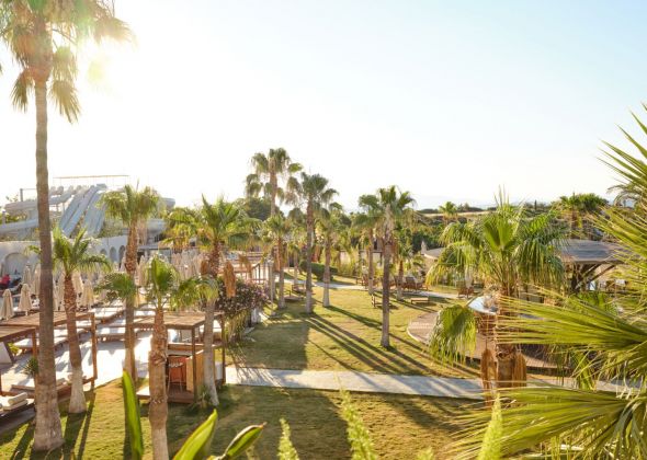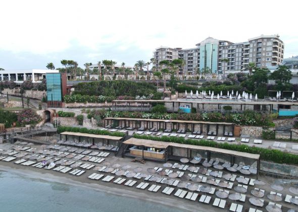 Плаж: собствен, пясъчен сдължина 100 м. и платформа, на която е разположен Mocha Beach Club с кабани (срещу заплащане). Чадъри, шезлонги и плажни кърпи на плажа и при басейна -безплатно.