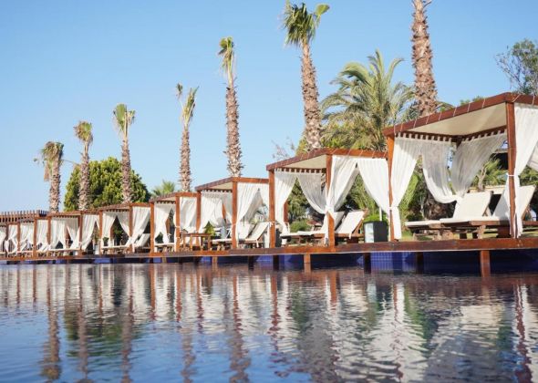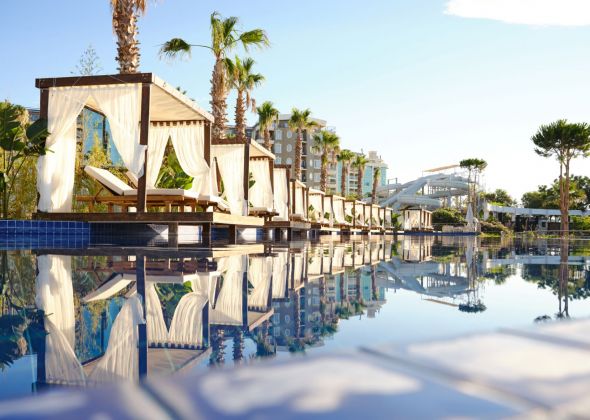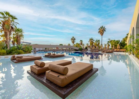 Основен ресторант с различни секции: Zeus ( предлага вкусно меню от най-изисканите вкусове на турската кухня до най-възхитителните вкусове на италианската кухня) Hermes (предлага свежи морска дарове), Athena (зона само за възрастни с богато меню), 3 а-ла-карт ресторанта : Apollon- турски, Aphrodite - китайски и Poseidon - средиземноморски (1 безплатно посещение, с предварителна резервация при мин. 7 нощувки), снек ресторант Apollon, Aphrodit Kitchen & Bar (предлага закуска, нощна супа и сандвичи), 5 бара, сладкарница, 2 открити басейна, 1 открит инфинити басейн (срещу заплащане), закрит басейн, водни пързалки, СПА център, конферентна зала, магазини, дискотека, паркинг.