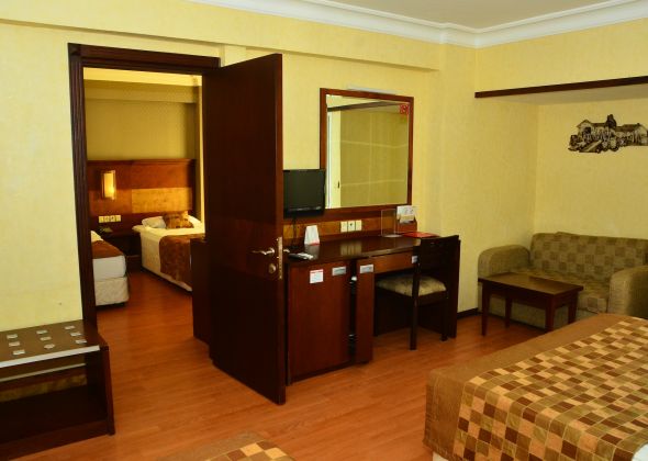 Хотелът разполага с общо 246 стаи, от които 88 стандартни с изглед градина (24 м²), 89 стандартни с изглед море (24 м²), 17 фамилни стаи (свързани стаи - 48 м²), 22 супериор стаи (26 м²), 8 промо стаи (20 м²) и 2 суита. Всички стаи са оборудвани с климатик, телевизор, телефон, баня с душ/вана, сешоар, мини бар (платен), сейф (безплатен). Почистване на стаите - всеки ден, смяна на спалното бельо и кърпите - 2 пъти в седмицата.