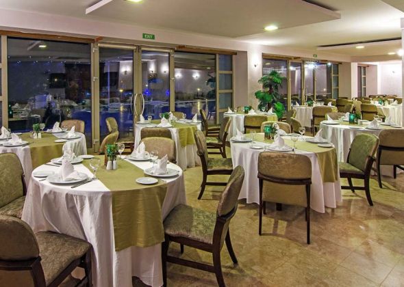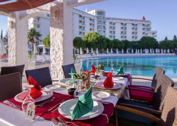 Основен ресторант, 2 а-ла-карт ресторанта, 4 бара, открит басейн, закрит басейн, водни пързалки, СПА център, конферентна зала, магазини, дискотека, паркинг.