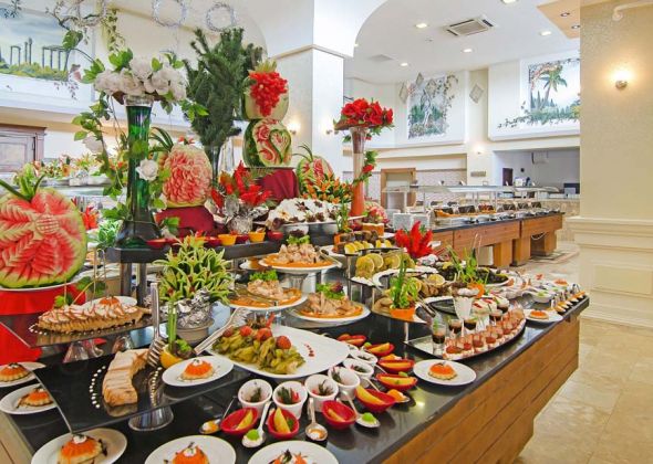 All inclusive – закуска, обяд и вечеря, междинни хранения, местни алкохолни и безалкохолни напитки - без лимит (съгласно концепцията на хотела).