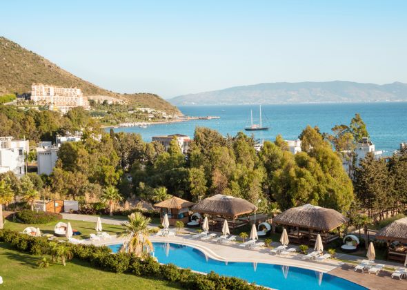 Намира се на 60 км от летище Бодрум, на 23 км от центъра на Бодрум, на 8 км от центъра на Тургутрейс, в района на Акярлар, на 120 метра от морето. Построен 2010 г., на обща площ от 16 000 м².