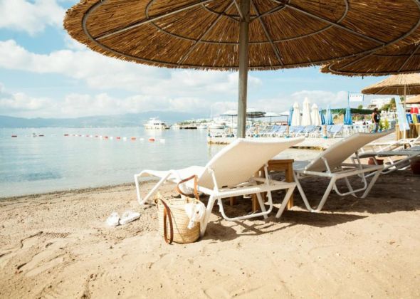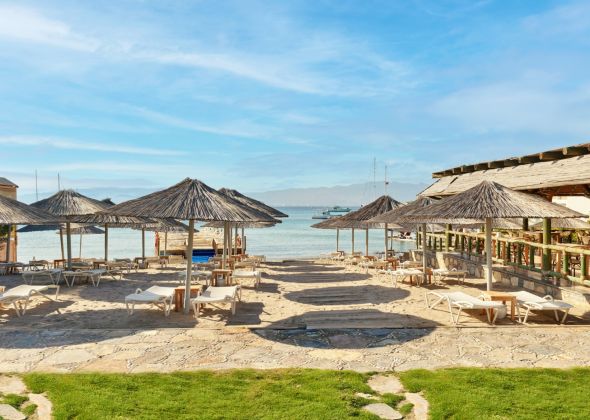 Собствен, пясъчен, платформа. Чадъри, шезлонги и плажни кърпи на плажа и при басейна – безплатно.