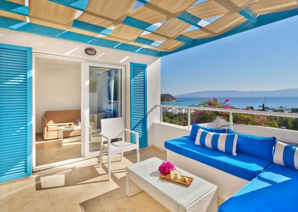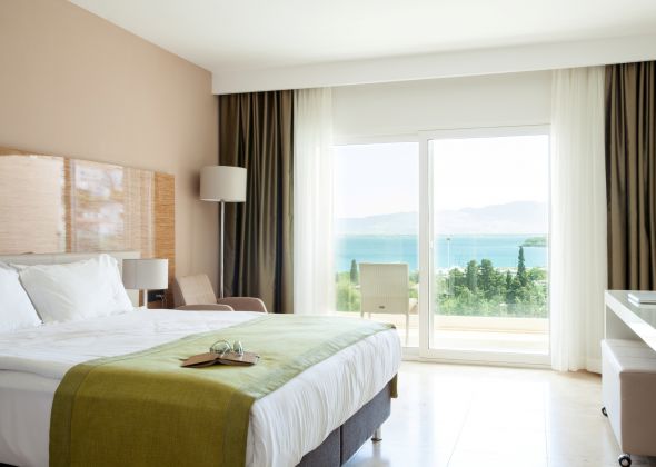 Стаи Land View Room (стандартни стаи в основната сграда с изглед суша - 30 м²), Sea View Room (стандартни стаи в основната сграда с изглед море - 30 м²), Club Room Land View (спалня, хол, баня, с изглед суша - 42 м²), Club Room Sea View (спалня, хол, баня, с изглед море - 42 м²).