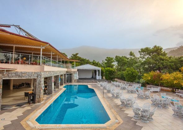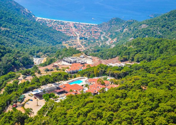 Хотелът се намира на 58 км от летище Даламан, на 45 км от Саклъкент и Далян, на 5 км от центъра на Фетие, на 3 км от световноизвестния плаж Олудениз. Построен е на 400 м надморска височина върху обща площ от 16 000 м2.