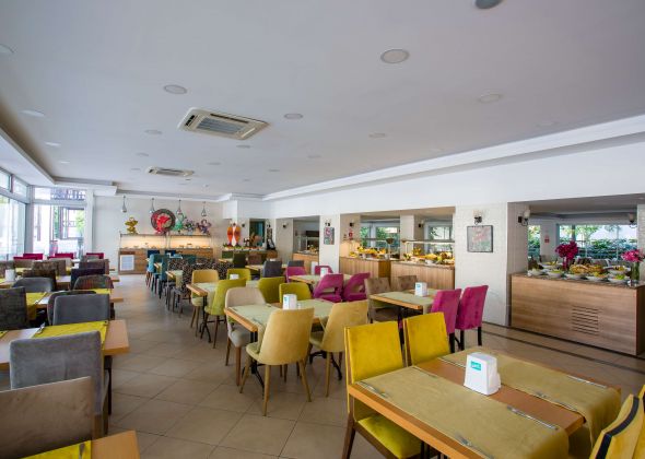 Основен ресторант, 2 бара, 2 открити басейна, 3 пързалки, СПА център, магазин, паркинг.