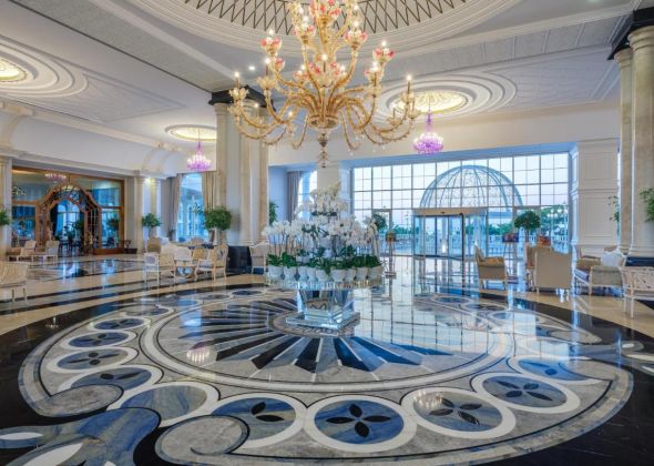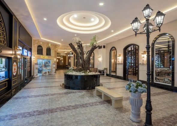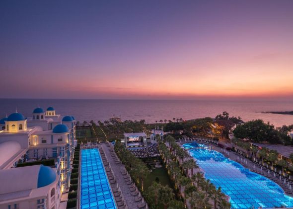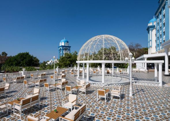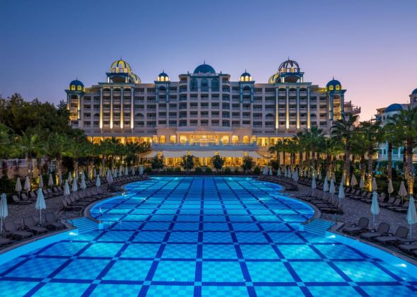 Основен ресторант, 6 а-ла-карт ресторанта (рибен, италиански– срещу заплащане)сладкарница, снек ресторант, гьозлеме, 5 бара (1 от които 24 часа), 2 открити и 1 закрит басейн, аквапарк с  4 водни пързалки, амфитеатър, СПА център, 13 павилиона на плажа, дискотека, магазини, 3 конферентни зали.