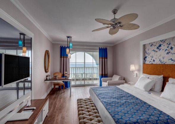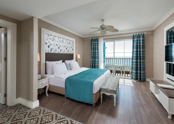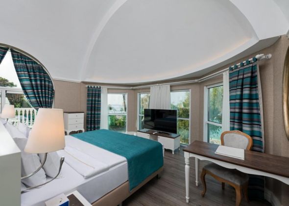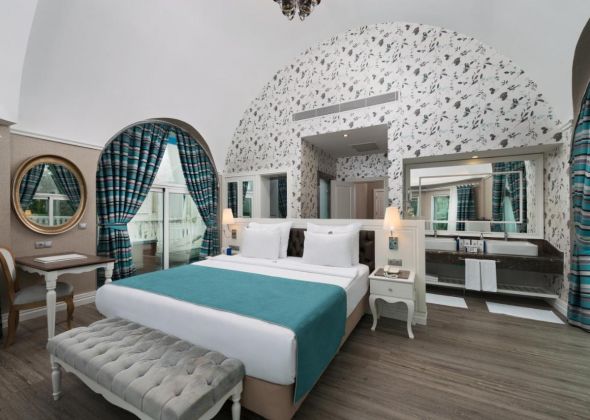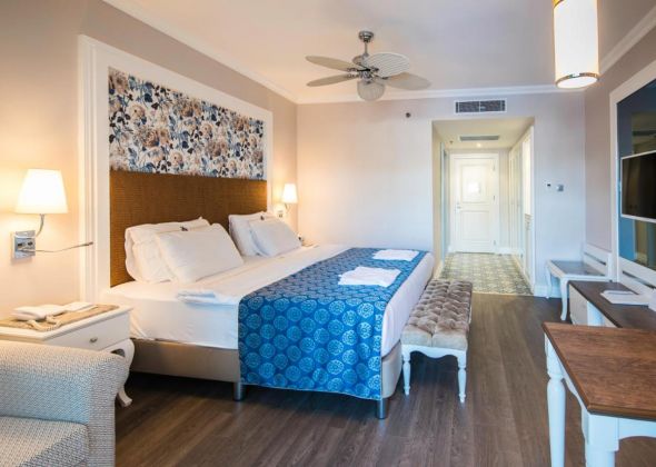 Стаи Main Building: Deluxe room (30 - 32 м2), Deluxe pool room (30 - 32 м2), Superior room (35 м2), Junior Suite room  (1 спалня, 1 баня - 40 м2 ) Superior suite room (2 спални, 1 баня - 57 м2), Villa suite room (2 спални, 2 бани ( В деня на пристигане се предоставят плато с плодове и вино) - 62 м2),  King suite room (2 спални, 2 бани + външно джакузи, мека бел, чадър и шезлонги (В деня на пристигане се предоставят плато с плодове и вино) – 64 - 80 м2)