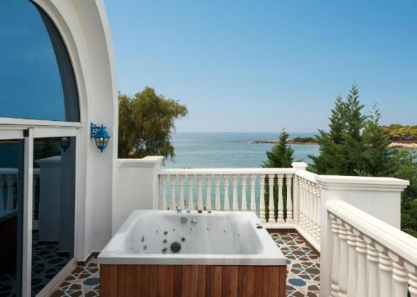 Стаи Villas: Platinum Villa (2 етажа с 2 спални, 1 хол, 2 бани + външно джакузи (В деня на пристигане се предоставят плато с плодове и вино) – 112 м2), Presidential Villa (5 спални, 1 хол, гардеробна, 5 бани, сауна, хамам, градина с чадъри, шезлонги, маса за хранене, частен басейн + джакузи (Специално обслужване от иконом, VIP трансфер и павилион на плажа) – 410 м2).