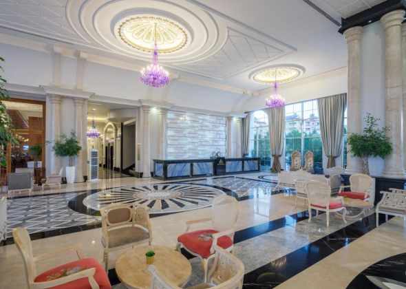 Намира се на 105 км от летище Анталия, на 100 км от центъра на Анталия, на 22 км от центъра на Алания, на брега на морето. Построен 2014 г., на обща площ от 40 000 м2.