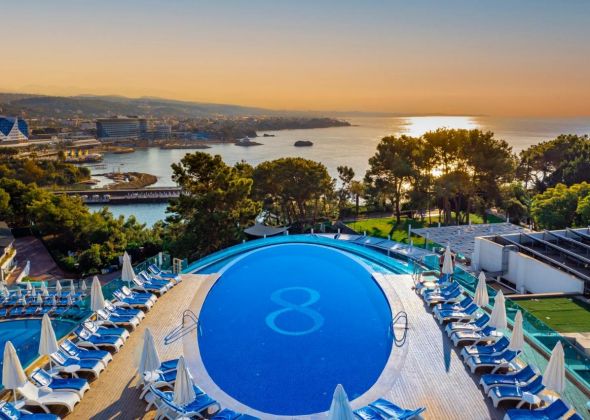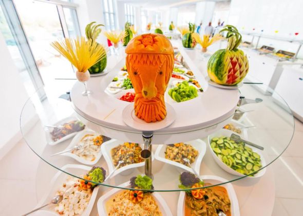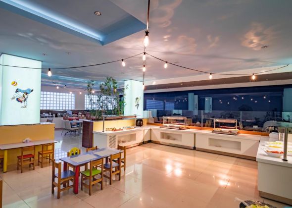 Основен ресторант, 2 а-ла-карт ресторанта (турски и рибен-съгласно концепцията), 9 бара, 3 открити басейна, Аква парк (16 водни пързалки за възрастни + 8 водни пързалки за деца).