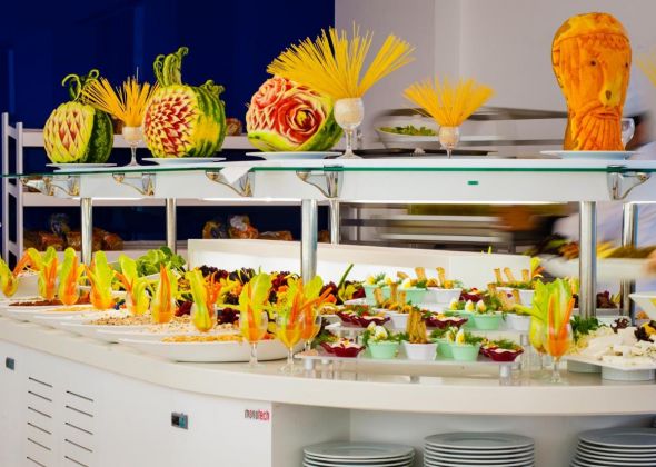 Ultra All Inclusive – закуска, обяд и вечеря на шведска маса, междинни хранения, алкохолни и безалкохолни напитки – без лимит (съгласно концепцията на хотела).