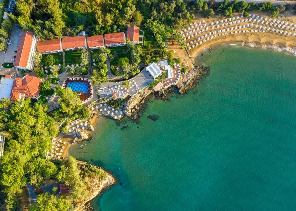 3 собствени плажа, от които 1 пясъчен и 2 чакълести. Чадъри, шезлонги и плажни кърпи на плажа и при басейна – безплатно.