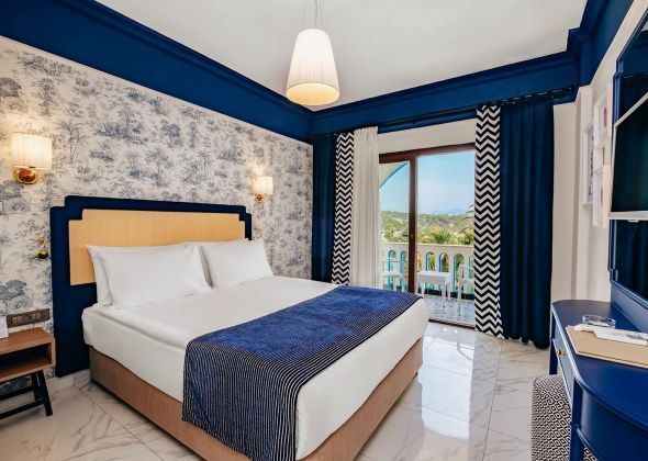 Стаи Main Building: Standard room land view (изглед суша - 24,8 м2), Standard room sea view (изглед море - 24,8 м2), Family Room (2 спални, баня - 39,68 м2).