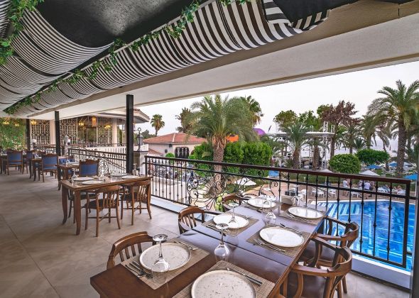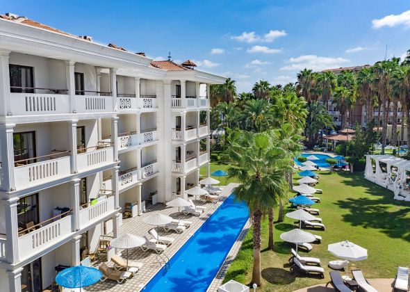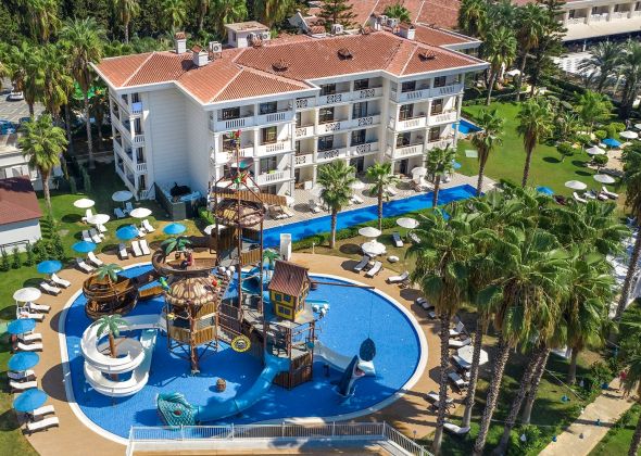 Намира се на 92 км от летище Анталия, на 99 км от центъра на Анталия, на 22 км от центъра на Алания, на брега на морето. Построен 1995 г., на обща площ от 54 000 м2. Реновиран 2021 г.