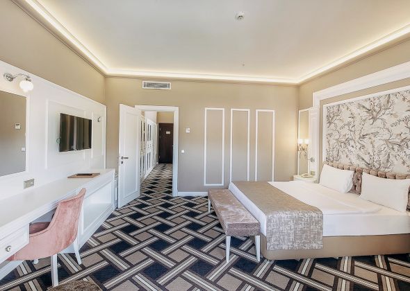 Хотелът разполага с общо 371 стаи, разположени в 1 основна сграда, 4 допълнителни сгради и 1 Residence сграда, от които Standard Garden View (с изглед градина - 26 м2), Standard Sea View (с частичен изглед море - 26 м2), Family Room (2 отделни спални, 1 баня - 43 м2), Residence Family Room (разположени в сграда Residence, 2 отделни спални, дневна, 1 баня - 49 м2).