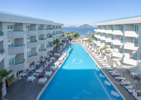 Намира се на 55 км от летище Бодрум, на 20 км от центъра на Бодрум, на 1 км от центъра на Тургутрейс, на брега на морето. Построен 2014 г., на обща площ от 10 000 м².