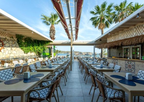 Основен ресторант, 1 бар, 1 открит басейн, 2 водни пързалки, паркинг.