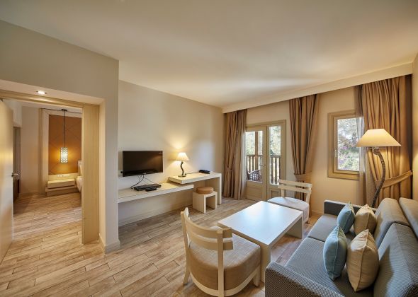 Хотелът разполага с общо 285 стаи,  разположени в 3-етажни къщички. Стаи Standard Room Garden View (спалня, баня, с изглед градина - 31 м²), Sea view room (спалня, баня, с изглед море - 31 м²), Family garden room (2 спални, 2 бани, с изглед градина - 62 м²), Family room sea view (2 спални, 2 бани, с изглед море - 62 м²).