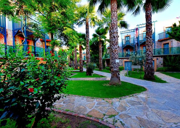 Намира се на 37 км от летище Бодрум, на 3 км от центъра на Бодрум, район Гюмбет, на 20 м от брега на морето (пресича се улица). Построен 1995 г., на обща площ от 13 200 м². Частично реновиран 2014 г.