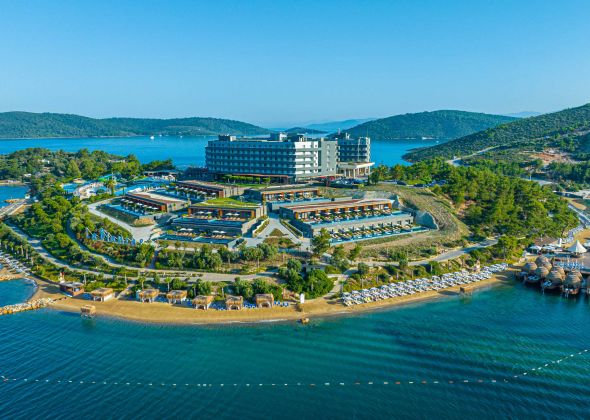 Намира се на 15 км. от летище Милас, на 26 км. от центъра на Бодрум, на 3 км от центъра на Гюверджинлик, на брега на морето. Построен през 2014г., на обща площ от 82 000 m². Реновиран през 2023/2024г. - ресторантите, общите части и подобрена Ultra All Inclusive концепция.