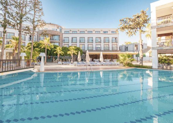 Намира се на 55 км от летище Бодрум - Милас, на 24 км от центъра на Бодрум, на 8 км от центъра на Тургутрейс, в район Акярлар, на 800 м от брега на морето. Построен 2009 г., на обща площ от 12 000 м².