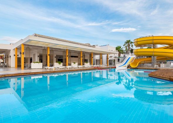 За децата: 2 водни пързалки, детска площадка, мини клуб.